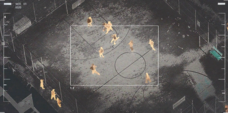 Even in the middle of the crisis, civilians will occasionally show signs of ordinary life. In this image, a basketball game takes place between groups of refugees, many of whom had never met before.