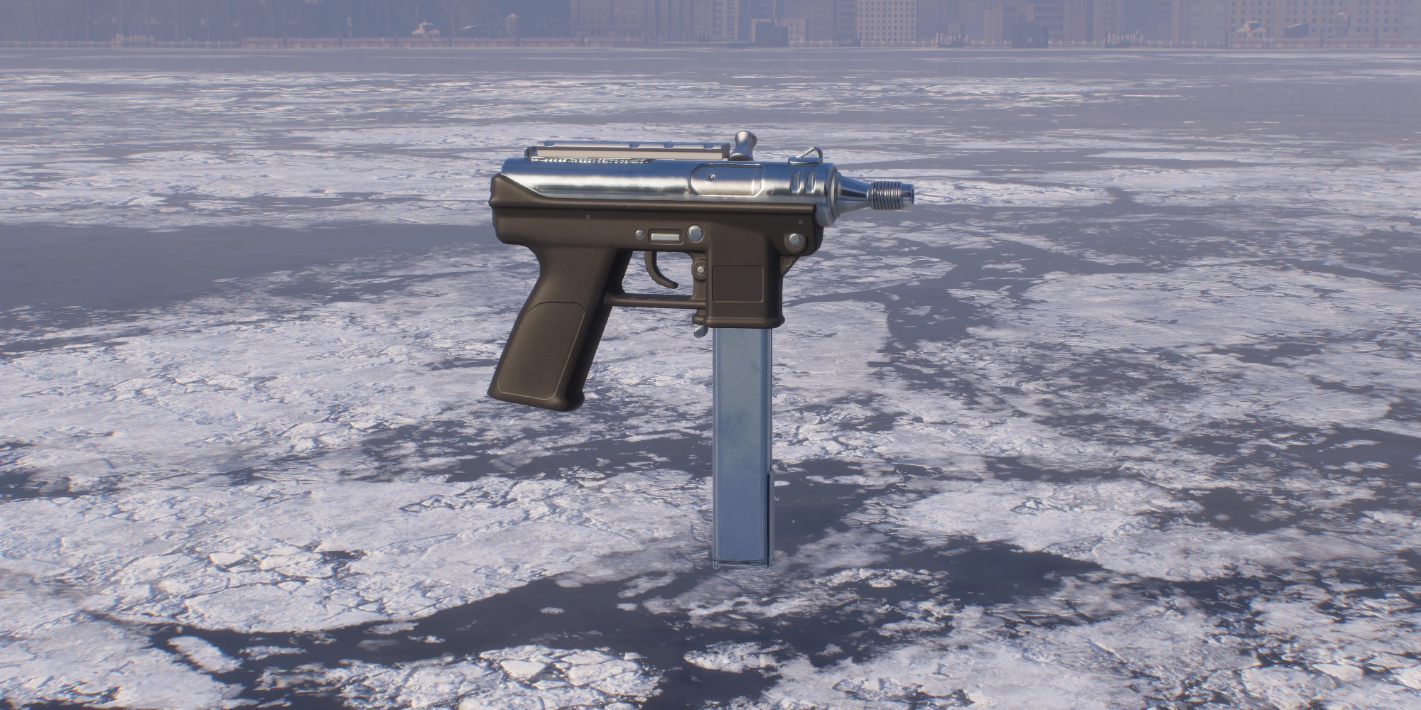 Eir is based on the SMG-9 submachine gun. The weapon has a bright silver finish.
