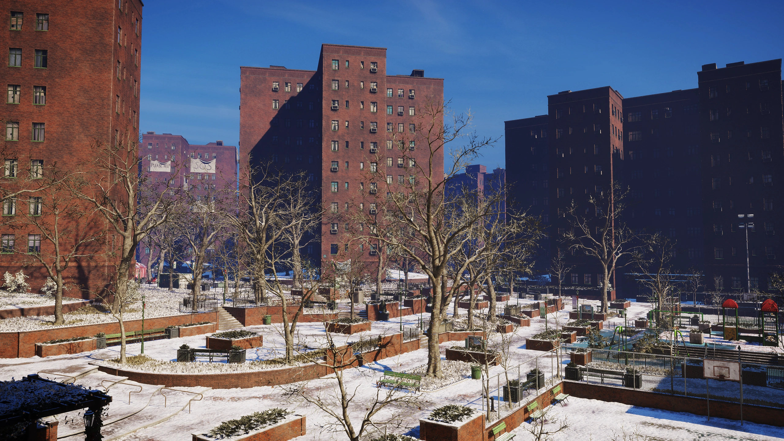 Named after Peter Stuyvesant, the last Dutch governor of New Amsterdam, this district is depicted as a densely populated urban zone with a mix of high-rise apartment buildings, small businesses, and community spaces, now abandoned or overrun by hostile factions and desperate survivors.