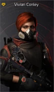 Vivian Conley is a Rogue Agent armed with a Carbine 7, KSG Shotgun and the Burn Sticky Bomb Skill. She is able to heal herself using Armor Kits.